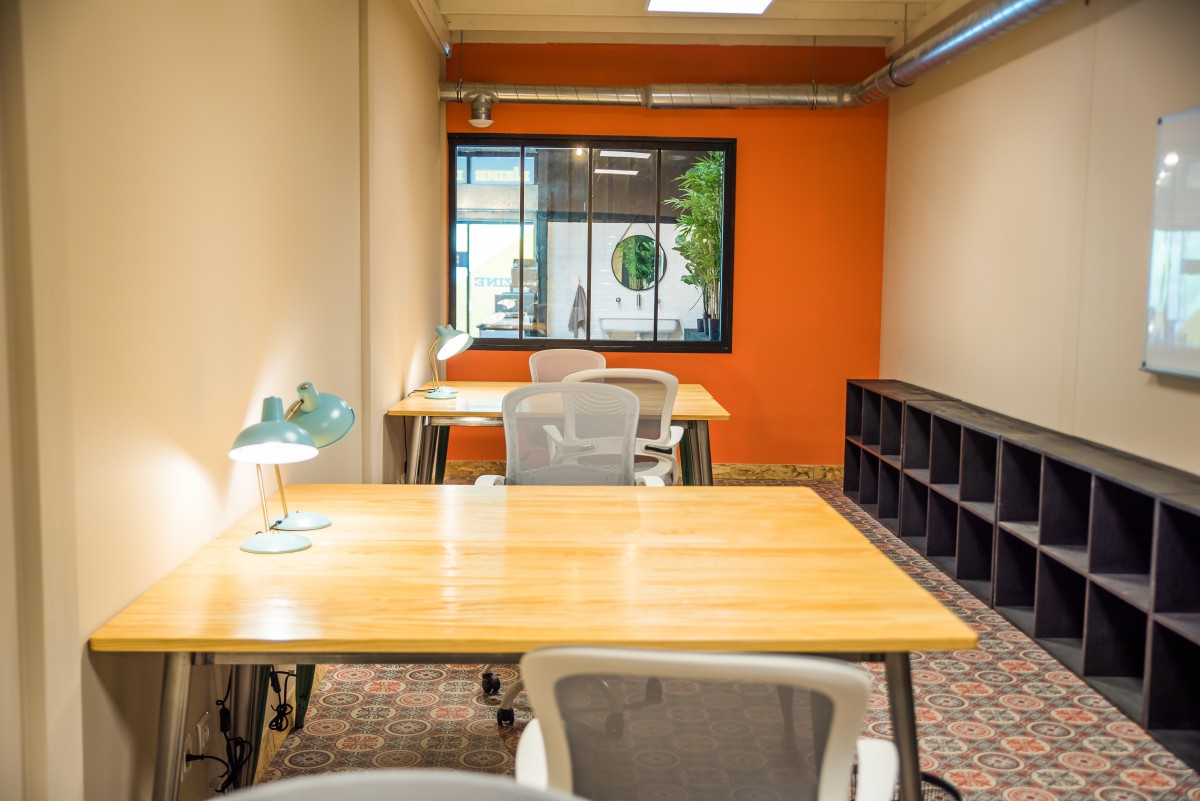 Beyond the classic coworking spaces, you will find many common spaces: lounges, a kitchen corner, a shaded terrace and a table football.